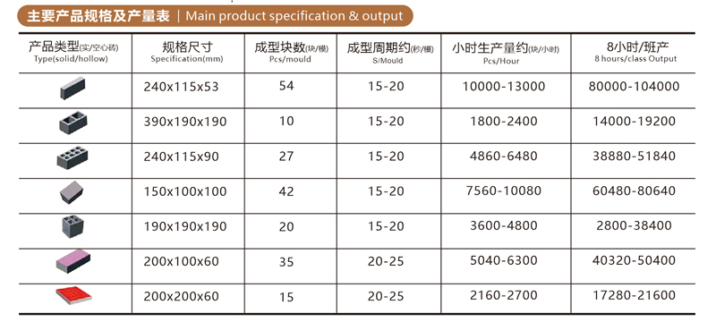 | 磚數(shù)量(塊/8h) | 7854-10800 | 21KG/塊 | |