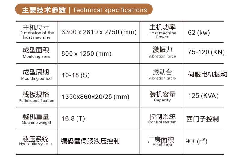 | 成型周期 (s) | 10-18(磚型區(qū)別) | 液壓系統(tǒng) | 編碼器伺服液壓控制 |
